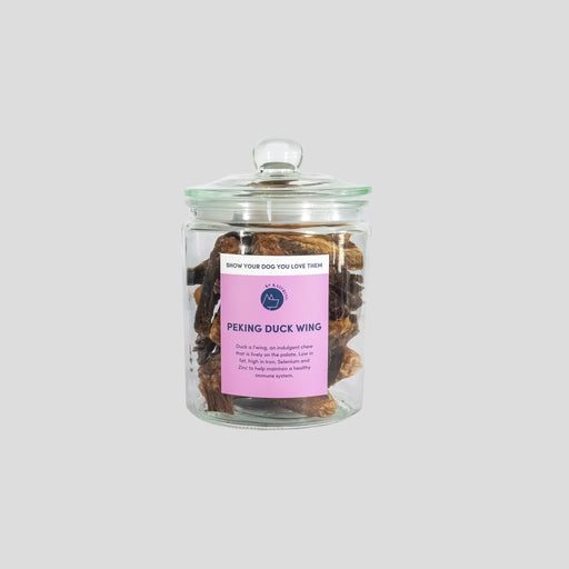 View full detailsA high quality, soda lime glass that's filled with our Peking Duck Wings. The versatile jar comes with a lid to keep the treats fresh. Our Peking D...